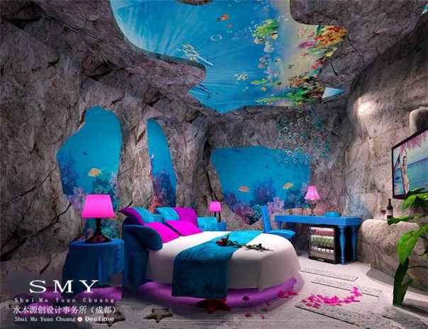 發(fā)布人:木水源創(chuàng) 發(fā)布時間:2019.03.15海洋生態(tài)客房設(shè)計主要以海洋為主要表現(xiàn)載體,充分體現(xiàn)靜謐、爽快、干凈的休息環(huán)境可以滿足客人的訴求。海洋生態(tài)客房功能區(qū)如何設(shè)計呢?下面達州SMY設(shè)計事務(wù)所設(shè)計師介紹以海洋為主題生態(tài)客房各功能區(qū)設(shè)計要點: