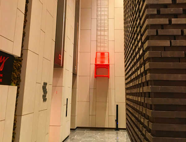 從門口進入,來到進入大廳的走廊,這里的墻面裝置藝術都充分體現(xiàn)著老成都的文化。其墻面的大面積裝飾,體現(xiàn)了成都的悠閑文化,它的靈感來源于老成都的壩壩宴、喝茶時的竹椅,能給人從容淡然、閑適舒緩的感受;而墻面的紅色裝飾物,就十分明了的顯示了成都人民所鐘愛的“火鍋文化”,渲染了成都人民熱情好客的氛圍。